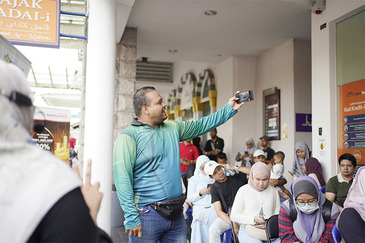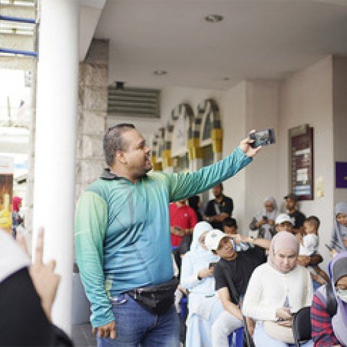 Rata-rata pelanggan dilihat gembira apabila dapat bergambar kenangan bersama Tuan GB dan Duta Alif Satar.