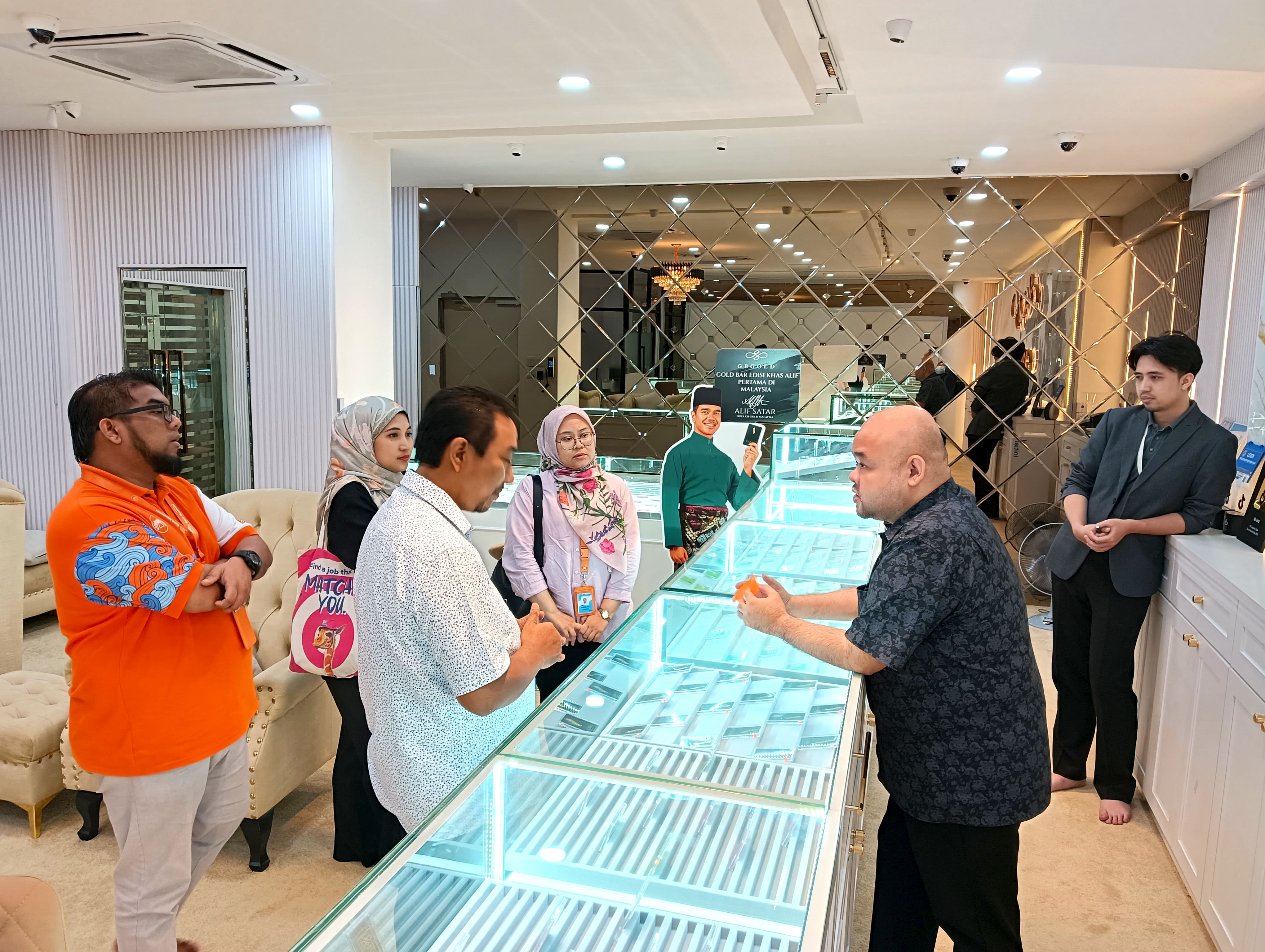 Kunjungan diwakili Pengurus Jualan dan Pemasaran Bank Muamalat, Encik Mohamad Fadzil Md. Yasir itu disambut oleh Pengasas dan Ketua Pegawai Eksekutif, GB Gold Malaysia, Tuan Shahfizzam Moideen atau Tuan GB.