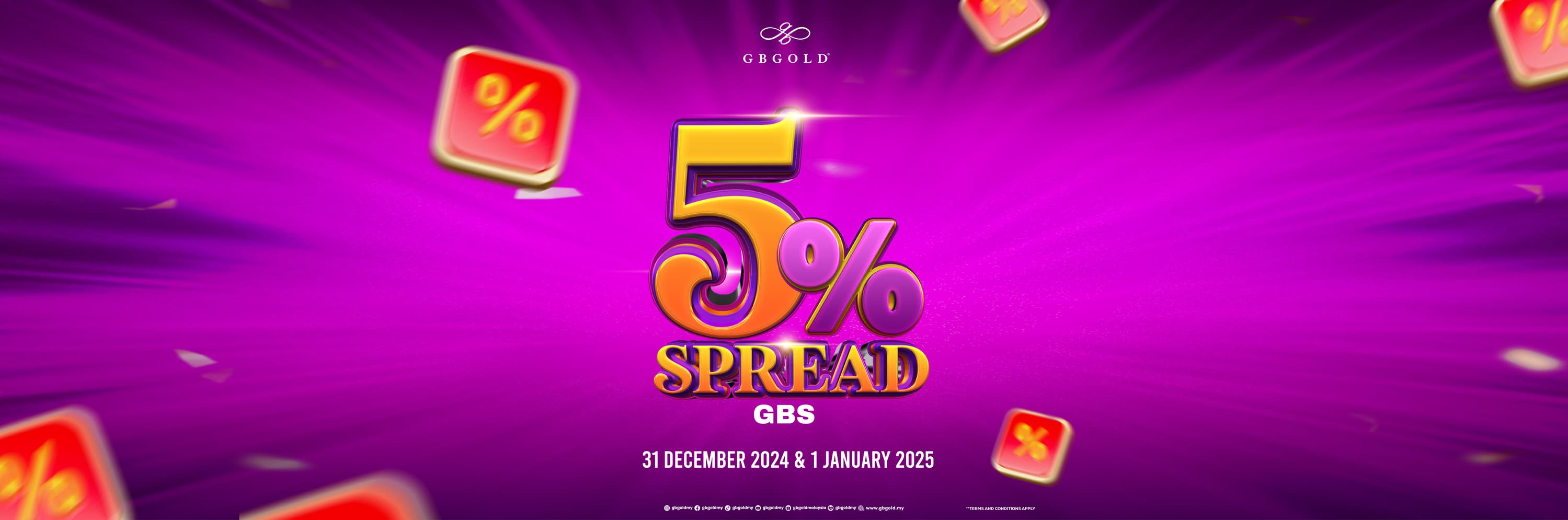 GB Gold Sdn. Bhd. (GB Gold Malaysia) menawarkan spread 5% untuk pembelian emas menerusi akaun emas Gold Bullion Storage (GBS) bermula pukul 12.01 pagi 31 Disember 2024.