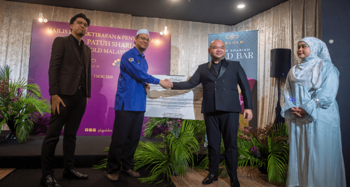 Penyerahan tersebut disempurnakan oleh Pengerusi Eksekutif dan Penasihat Syariah Elzar Shariah Solutions & Advisory (lantikan oleh Suruhanjaya Sekuriti Malaysia) Dr. Zaharuddin Abd Rahman. Hadir sama Ketua, Ketua Pegawai Operasi GB Gold Malaysia, Mohd Afiq Ahmad dan Pengurus Besarnya Norhana Osman.