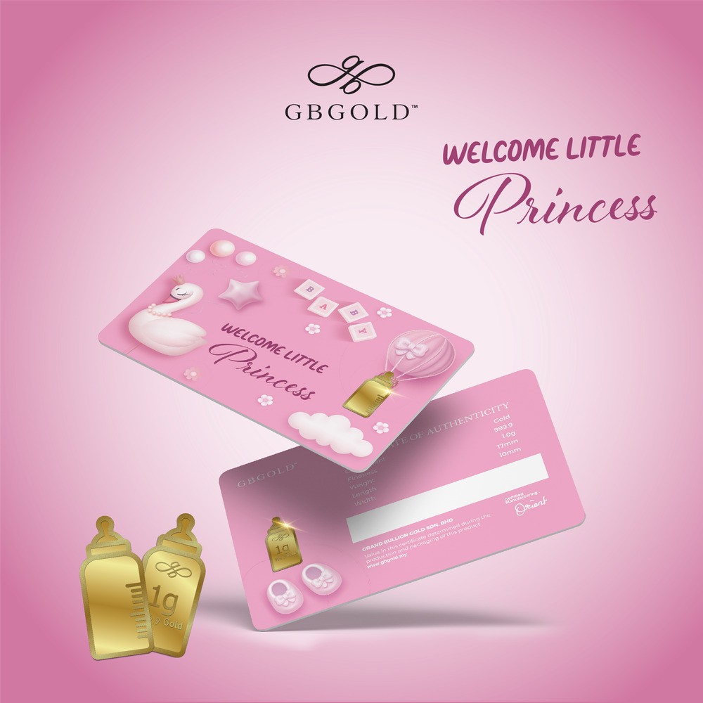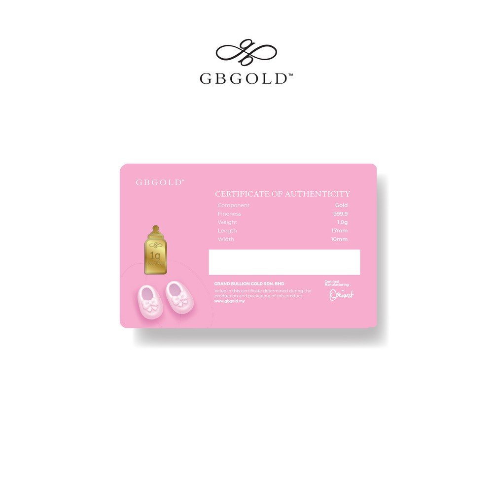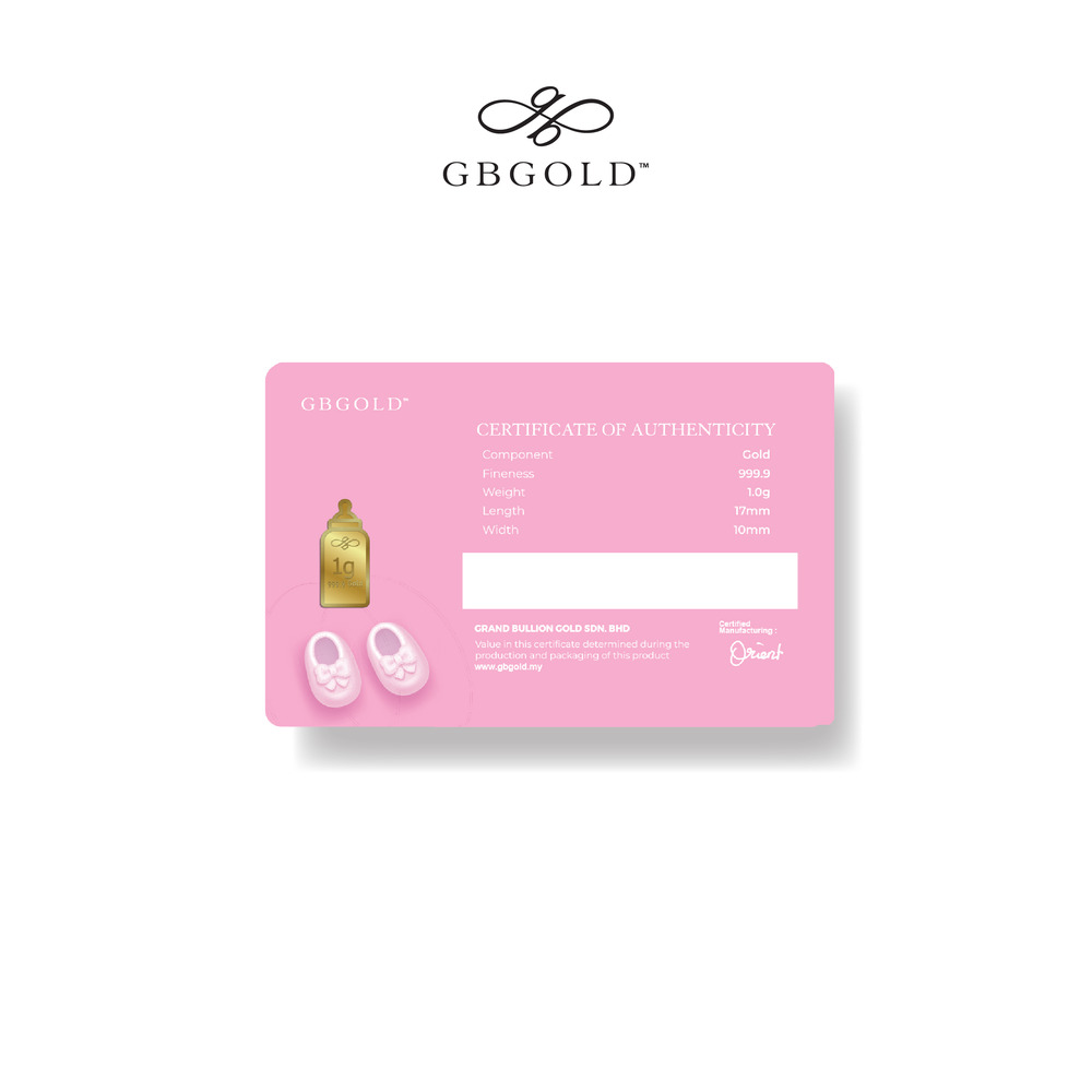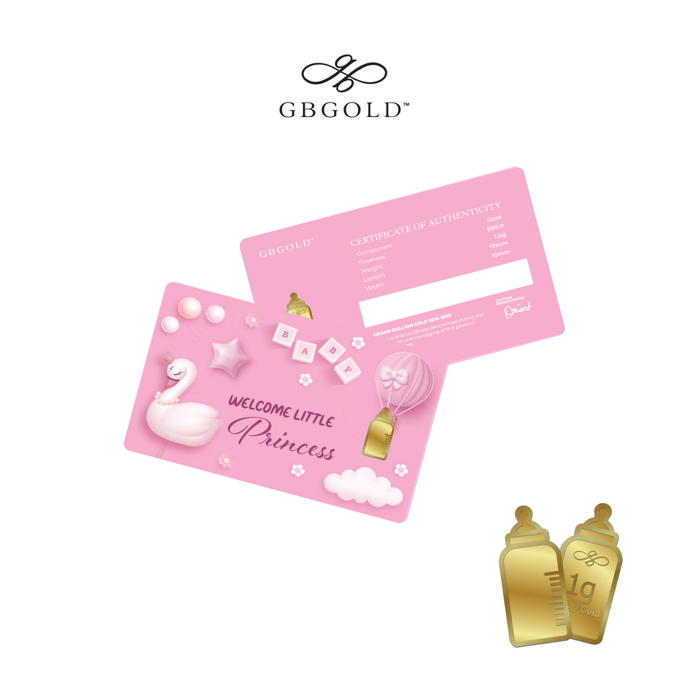 Introducing the GB Gold Welcome Princess Bottle Gold Bar 1g (Emas 999.9), the perfect addition to your collection of gold decorations and accessories. Crafted with 999.9/24K purity, this gold bullion bar is a must-have for any discerning collector.